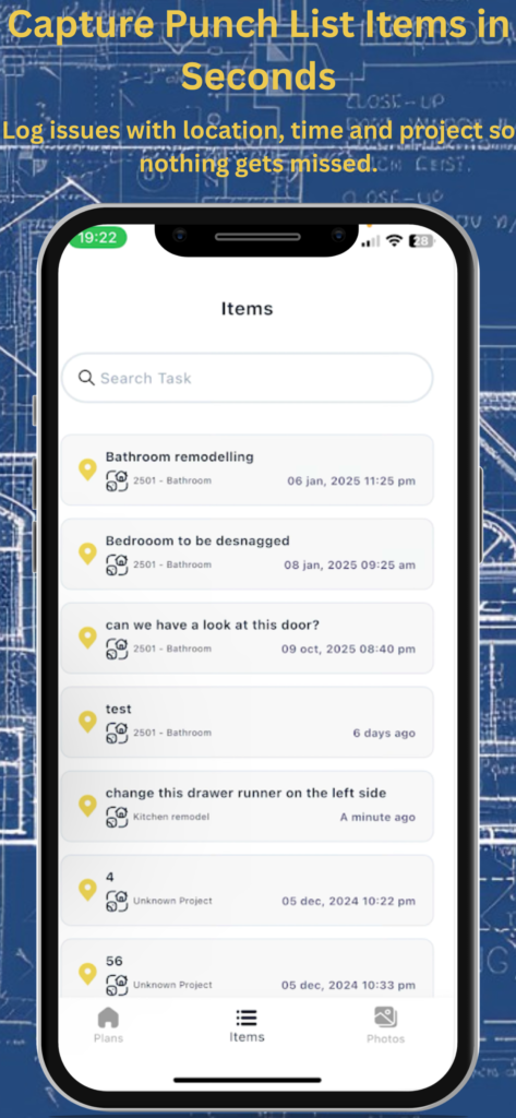 A. Most new users create their first project and pinned task in minutes. There’s no training required, open the app, upload your plans, and begin pinning.